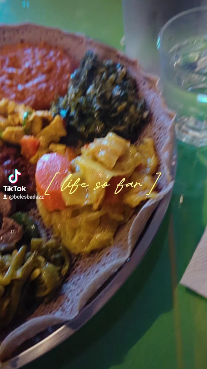 Brought my family to try Ethiopian cuisine (where they’re from it’s basically non-existent). Not pictured, we also had shiro and coffee. Always order extra injera. Family appreciated the alcohol selection. Everything was delicious, the service was excellent, and the ambiance was great.