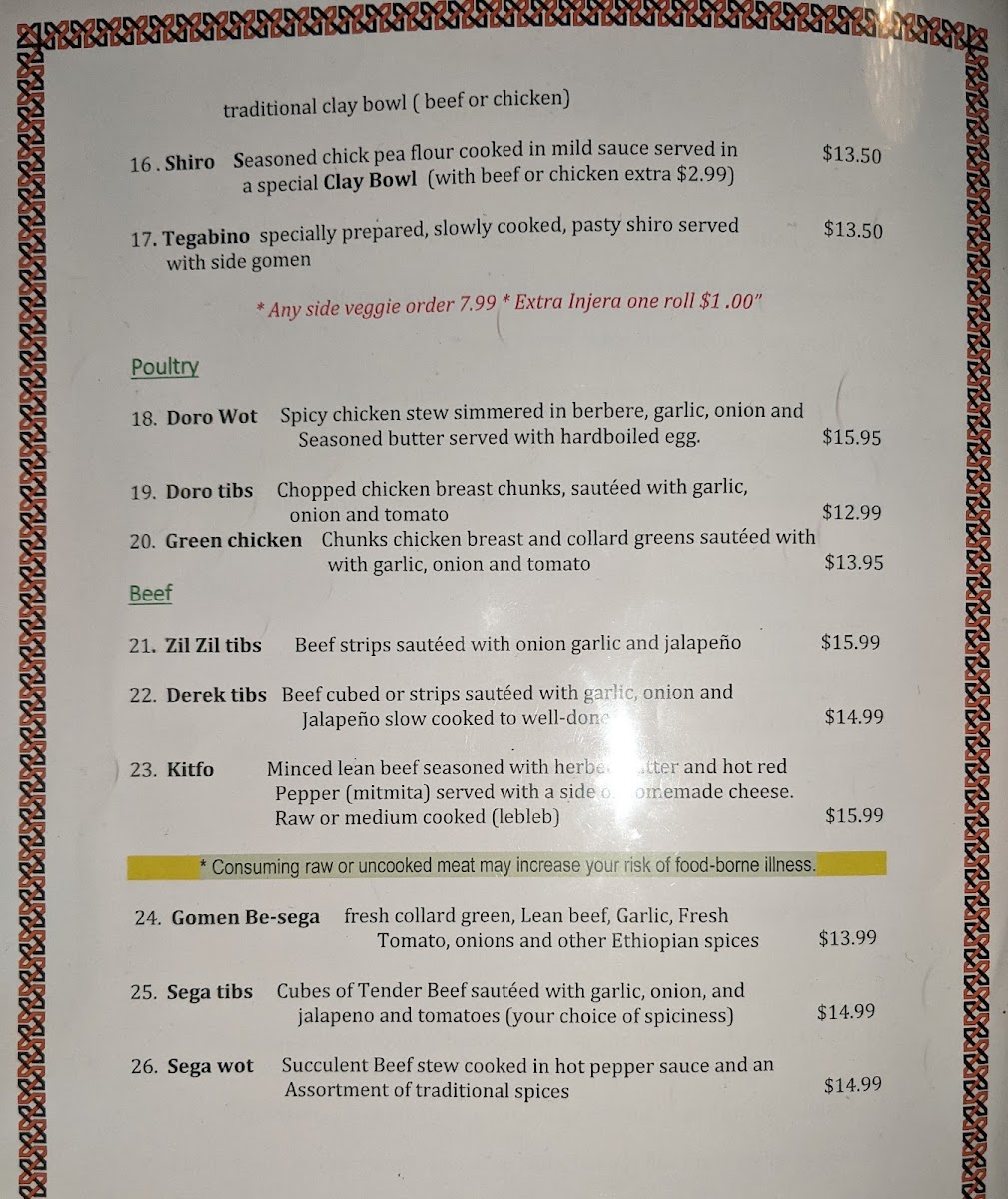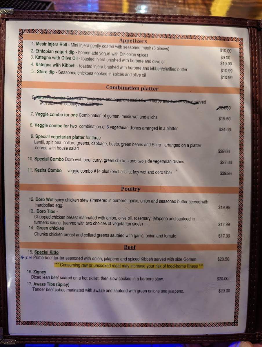 The menu at Kezira Restaurant offers a thoughtful selection of traditional Eritrean and Ethiopian dishes, served in a setting that feels both welcoming and unpretentious. It’s designed for relaxed meals where you can savor comforting flavors and share plates with friends or family.